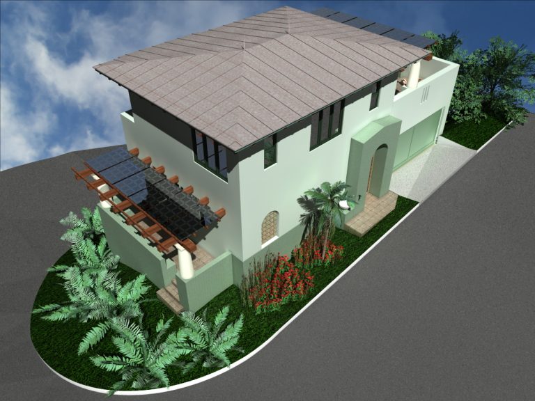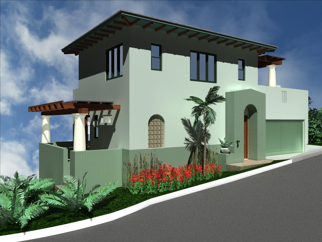 Their site was 2382 square feet (.05 acre) in size, surrounded on three sides by a street, and sloped in two directions over fifteen feet. The soil on the site was hard bedrock, so lowering a building into the soil was not an option. City regulations required 2 car parking onsite, height limits that followed the slope, encroachment planes, setbacks, lot coverage limits and other significant zoning restrictions. The lot was also located in an area with a strong neighborhood community interested in maintaining their quality of life. The budget was conservative and the Clients were interested in architectural history.