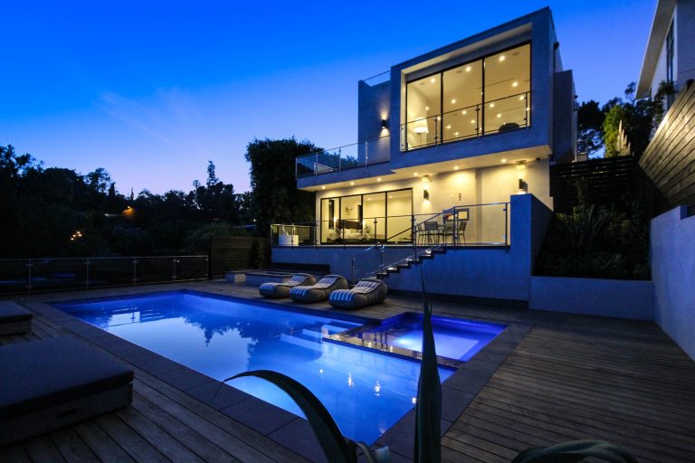 Landa is a series of three speculative developer single family residences on three contiguous hillside lots in the very desirable Silverlake area in Los Angeles. Within a typical development scenario, the builder would want three identical homes for cost and construction efficiencies. In this case, the sites all had individual size and shape, steep topography, and varied geology. The one thing they shared was an amazing view of downtown. Working within the restrictive LA Hillside Area Development Standards limited floor area, bulk, envelope height, and the limited street width dictated parking, fire and refuse access. What developed was three distinct homes with different personalities. The first sold before it was constructed, the other two were built by the developer.